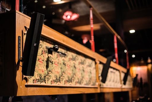 For the main dining area six Python-KP102 line array elements with 3” cone drivers, 8 half-meter Python-KP52 line arrays, 4 Thunder-KMT12P12” passive subwoofers and two 21” Thunder-KMT21 subwoofers, one passive and one powered, were discreetly installed throughout the room and driven by a 4-channel 2000W Kommander-KA84 amplifier. Four Python-KP52 half-meter line array elements were setup at the sushi bar and driven by one Kommander-KA84 amplifier.